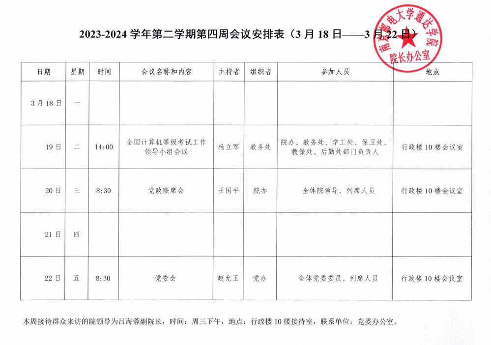2023-2024学年第二学期第四周会议安排表