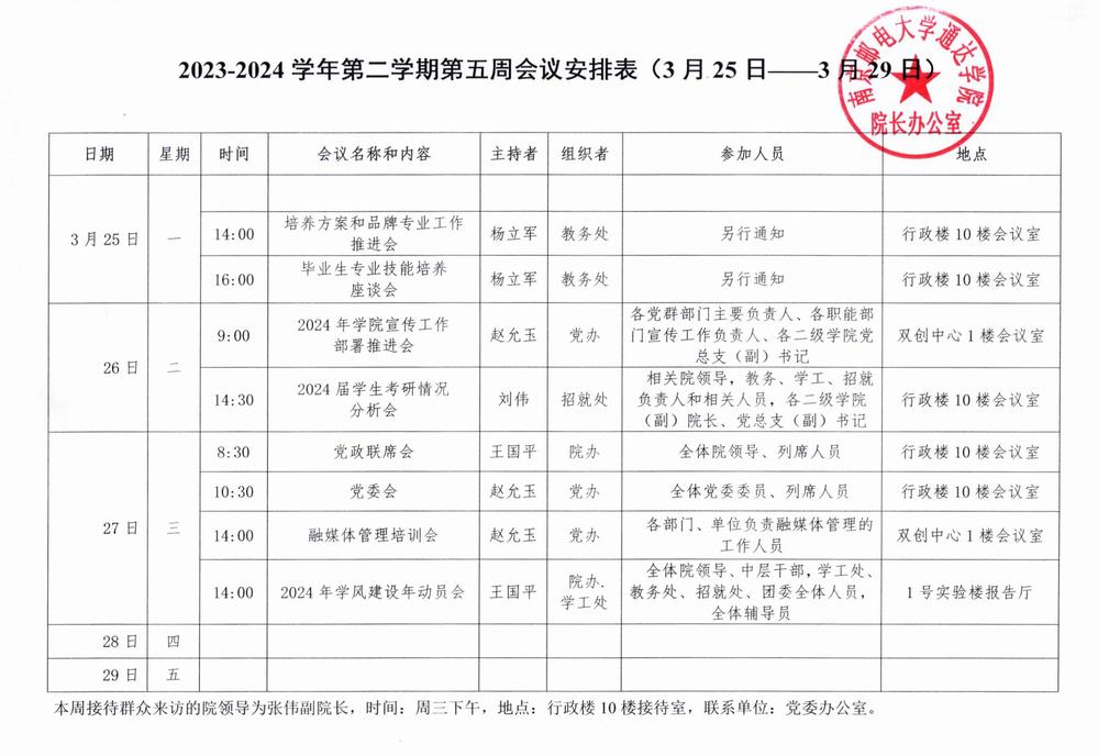2023-2024学年第二学期第五周会议安排表