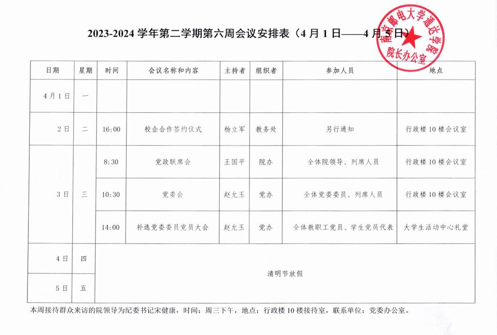 2023-2024学年第二学期第六周会议安排表