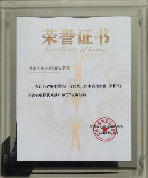 taptap点点被授予“江苏省啦啦操先进推广单位”