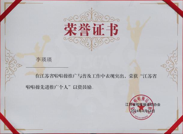 taptap点点李瑛瑛老师被授予“江苏省啦啦操先进推广个人”