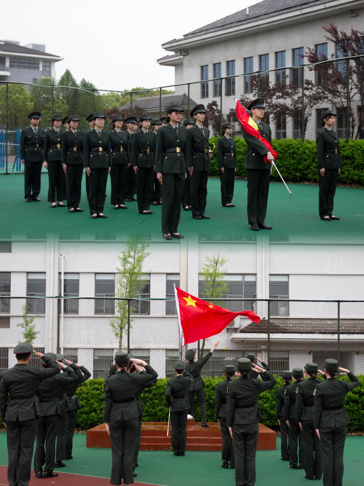 致敬祖国,深情祝福母校。迎着第一缕晨光,院国旗护卫队昂首挺胸,迈着整齐而有力的步伐将国旗护送至升旗台。全体师生面向国旗,共唱国歌,一同向国旗致敬,向伟大的祖国表达深切的热爱之情,向亲爱的母校送上诚挚的生日祝福。