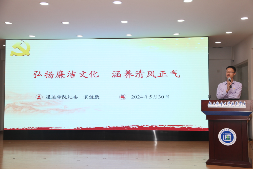 电气工程学院、通信工程学院的两位同学作为毕业生党员代表发言。他们结合日常学习、生活经历分享了各自对廉洁的理解和体会,立志在奔赴银行和志愿服务乡村振兴计划后必将廉洁自律、努力发光发热,折射出通达学子直面时代浪潮,勇于担当、善于作为、甘于奉献的坚定信念。