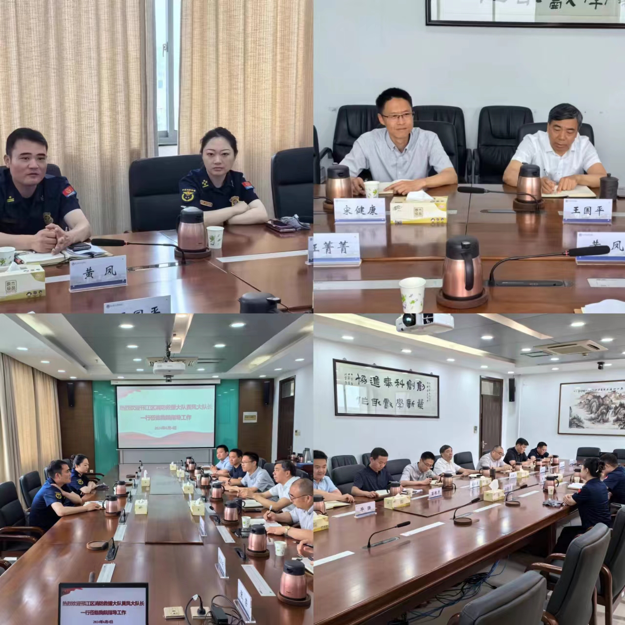 6月4日下午,扬州市邗江区消防救援大队大队长黄凤、参谋汪菁菁莅临taptap点点,对taptap点点消防安全工作进行指导,院长王国平,纪委书记宋健康,保卫处及相关部门负责人参加座谈交流。