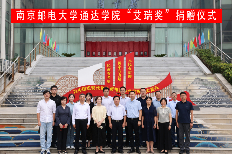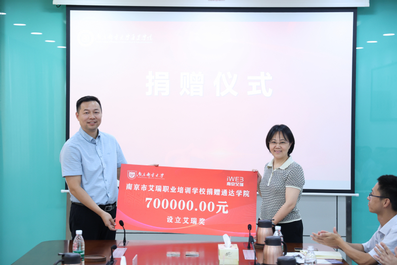 南京邮电大学教育发展基金会理事长刘陈向艾瑞集团颁发捐赠证书