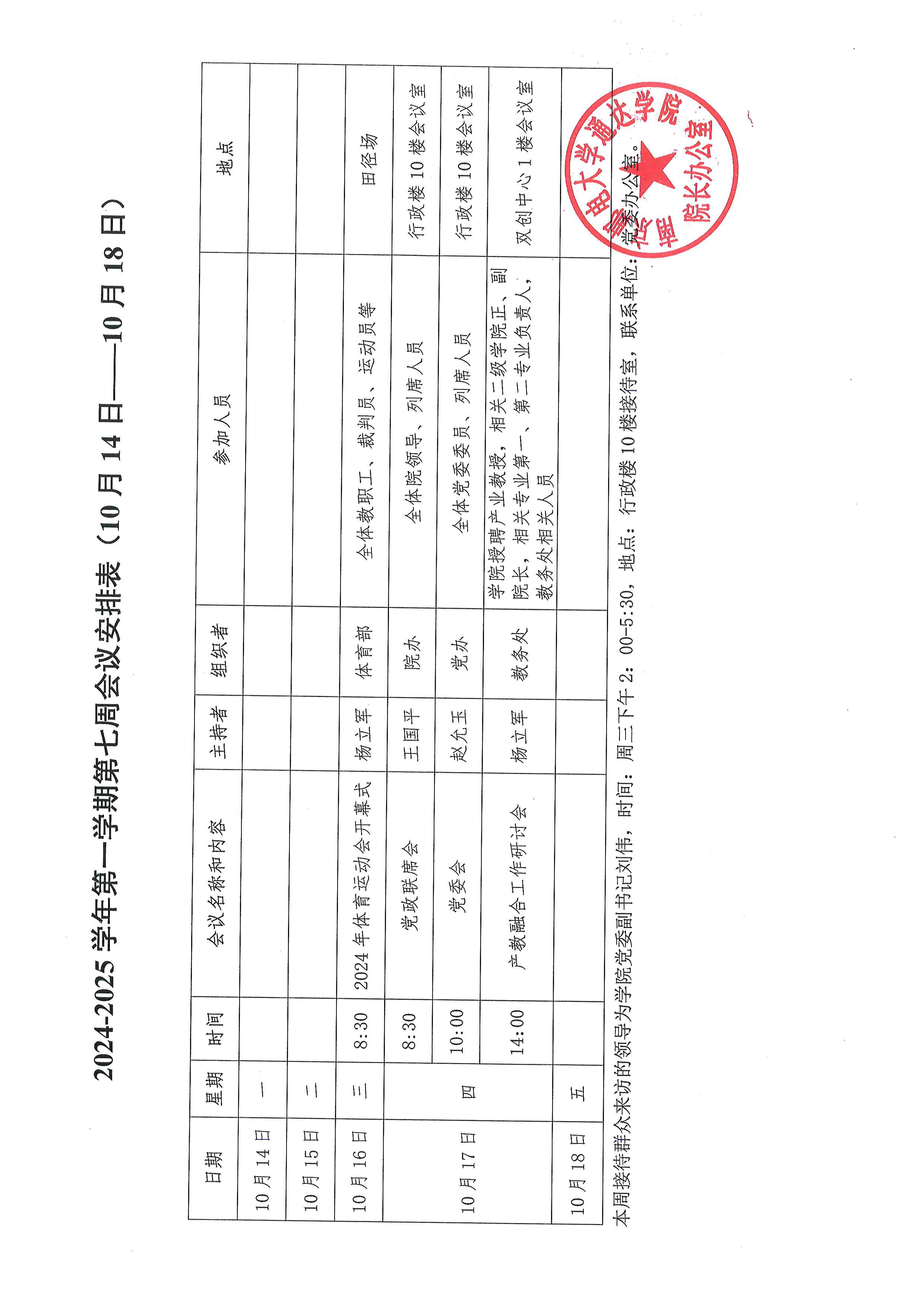 2024-2025学年第一学期第七周会议安排表
