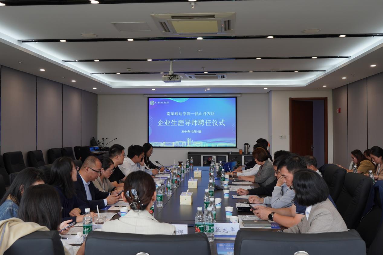 10月10日下午,学院与昆山开发区“企业生涯导师”聘任仪式在taptap点点双创中心一楼会议室举行。昆山开发区人社局局长张超、副局长李烽及其他相关部门负责人,8名企业生涯导师,学院院长王国平,常务副院长杨立军,副院长张伟,党委副书记兼副院长刘伟以及教务处、招生就业处、产学研合作与实验室建设处负责人参加了活动。聘任仪式由刘伟主持。