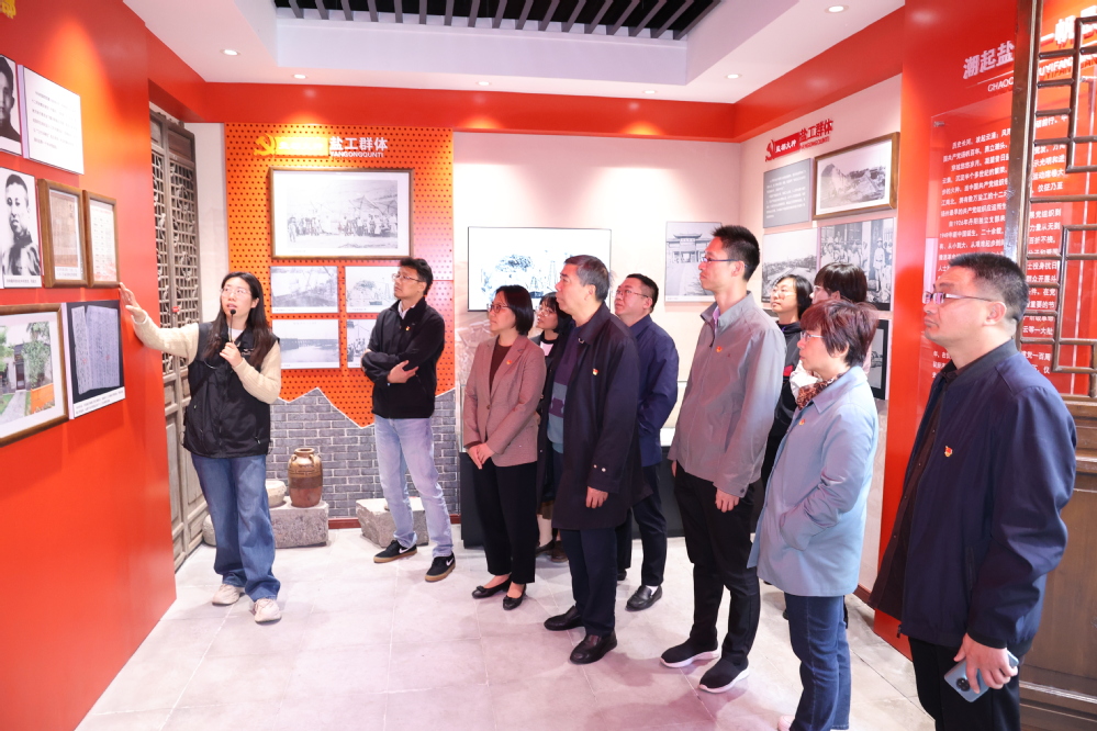 在讲解员的带领下,学院党委理论学习中心组首先在中国两淮盐运博物馆参观学习。馆内展出了“淮盐转运 源远流长”“东南盐都 利浦尽美”“华丽转身 继往开来”“人杰地灵 遗泽流芳”四大板块和600余件两淮各时期与“盐运”相关展品,呈现了一条江、一条河、一粒盐写就的盐都传奇。馆内珍藏的《盐都纪盛》由中共淮南区党委十二圩地下党支部组织委员兼政治交通员沈捷所著,深入挖掘了“盐运文化”古今交汇的现实意义,展现了中华儿女的智慧与汗水。通过参观学习,中心组成员感受了“盐运文化”蕴藏的历史文化与精神传承,进一步增强了文化自信,涵养了家国情怀。
