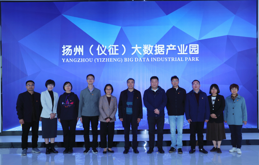 学院党委理论学习中心组在仪征市开发区内大数据产业园合影