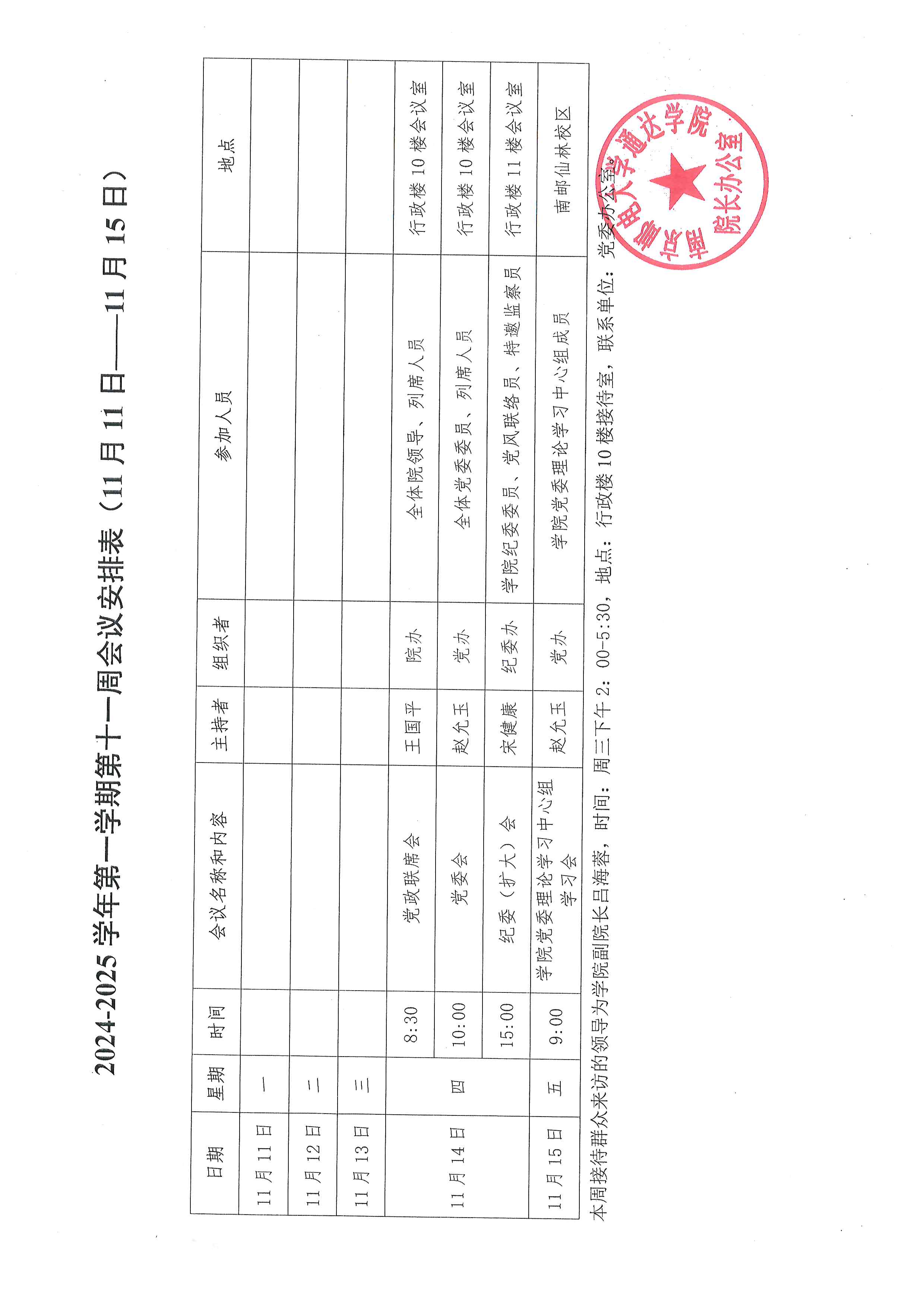 2024-2025学年第一学期第十一周会议安排表