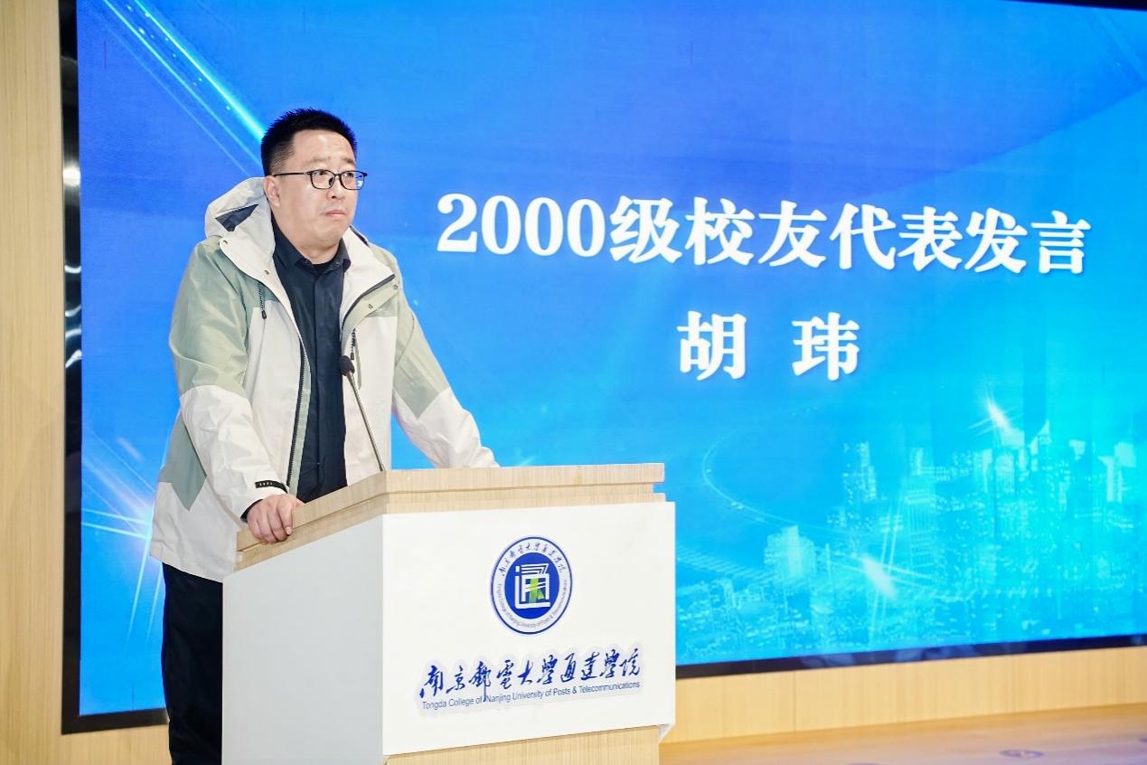 2000级校友代表胡玮和胡汉林同学分别发言。他们分别回忆起求学时的青葱岁月和同窗情谊,表达了对老师们谆谆教诲的感激之情,同时分享了各自的工作、生活经历,感慨二十年的历练成长,衷心祝愿母校的发展越来越好。