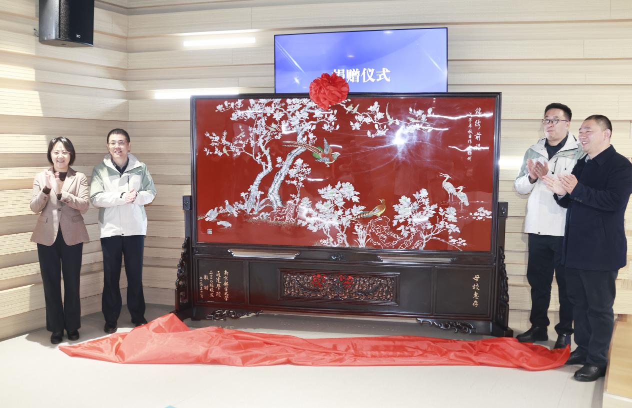 捐赠仪式,赵允玉、高志华书记和校友代表胡玮、胡汉林同学共同揭牌