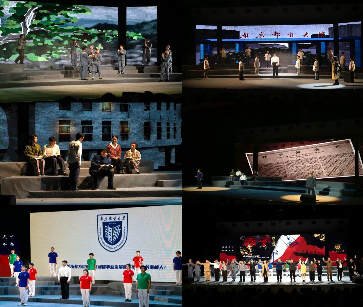 原创话剧《赤子》以抗日战争时期山东战时邮务总局局长、战邮干训班创始人赵志刚,南京邮电学院首任党委书记兼院长、老红军秦华礼,为国守岛21年的王继才式校友徐六保,隐姓埋名的“马兰三杰”校友,国际电信联盟前秘书长赵厚麟等为“主人公”,生动讲述了我校“为党育人,为国育才”的初心使命和“永远跟党走”的坚定信念。话剧通过沉浸式的实践教学方式,将学生代入角色、带入剧本、带入剧情中,在表演过程中受到潜移默化的影响,激发起青年学生的爱国情和报国志,激励他们将青春奋斗融入党和人民事业,接续书写新时代的青春答卷。