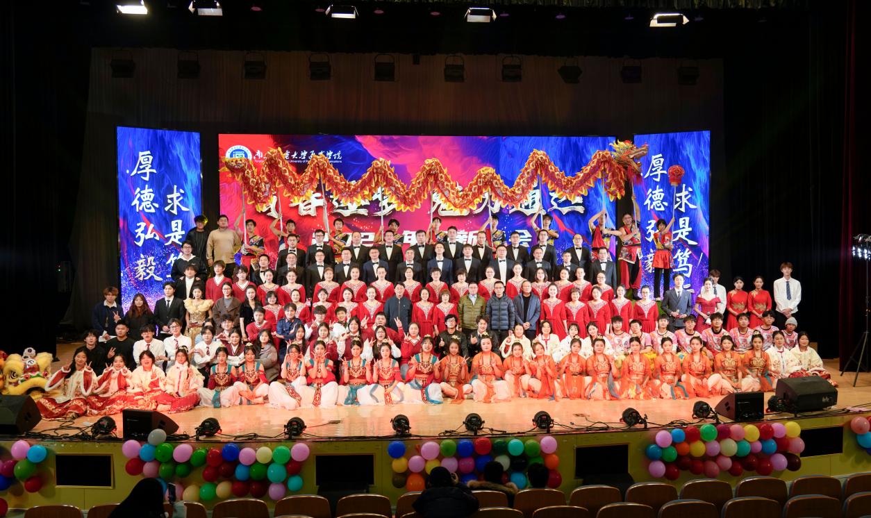 暖场视频《你好,通达》拉开了晚会的帷幕。南邮龙狮舞《龙腾华夏》铿锵有力的锣鼓声和神气活现的龙狮瞬间点燃了观众的热情。歌曲《第一天》展现了taptap点点学子积极向上、乐观面对生活的态度。舞蹈《丝路芳华》《rock and rock》及《summer dream》令人目不转睛。手语操《国家》、小品《和平饭店》、歌曲《有我》和《我爱你中国》激励着当代青年矢志不渝、赤胆忠心的爱国情怀。歌曲《一路生花》和短视频《前行》表达了青年学子对未来生活的美好向往。24级新生辅导员带来了暖心的歌曲串烧和情真意切的寄语。邮韵之声教工合唱团饱含爱意的合唱《天耀中华》将晚会推向了最高潮,歌声雄浑有力,歌词中饱含的期许与盼望,彰显着通达教师对新生的谆谆教导与美好祝福,令台下同学深受触动。晚会在师生大合唱南邮校歌《信达天下》中落下帷幕。