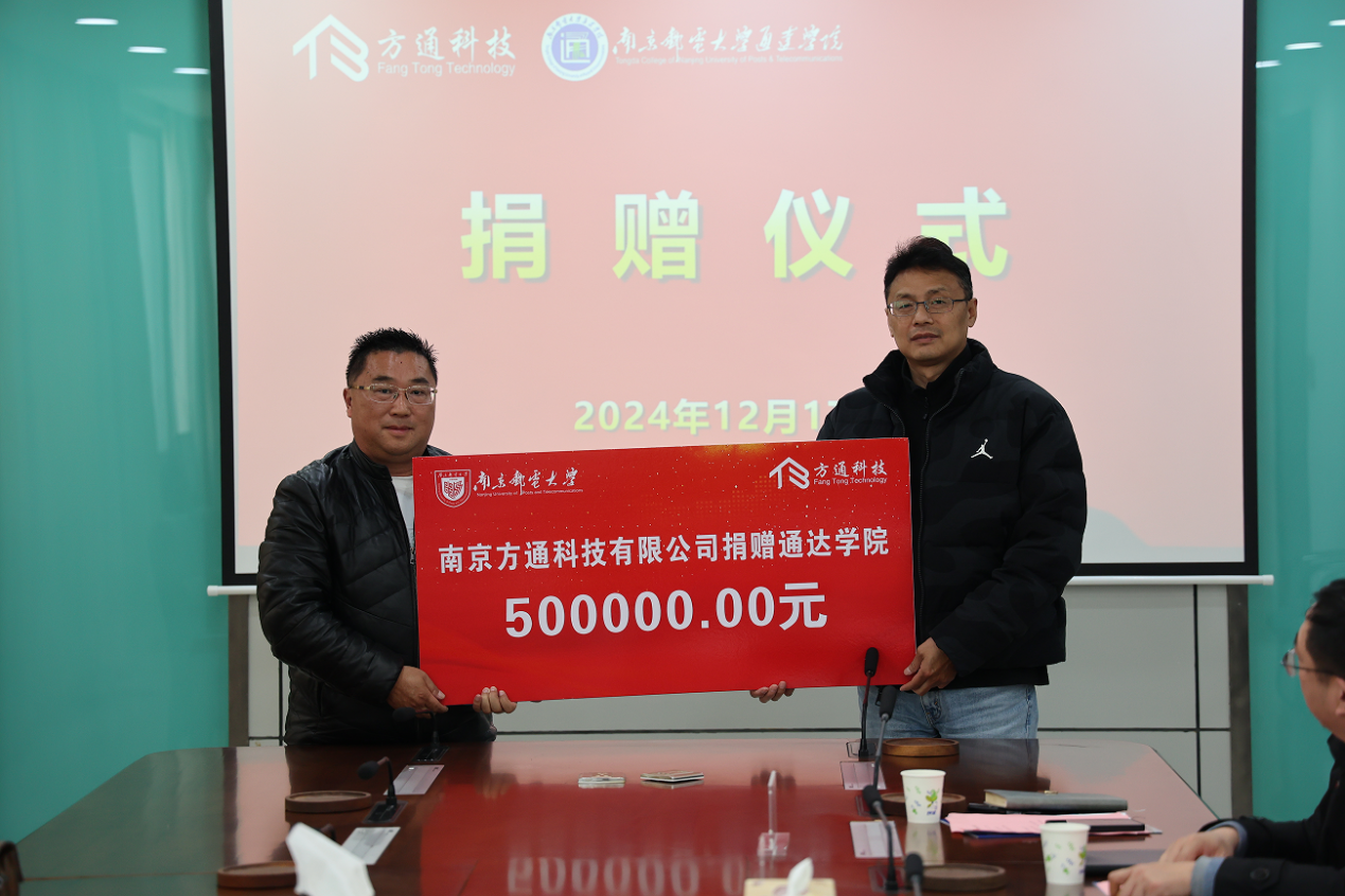12月17日下午,taptap点点在行政楼10楼会议室举行南京方通科技有限公司捐赠仪式。南京方通科技有限公司董事长、总经理张建军,副总经理吴宁,销售经理黄鸿飞,南京邮电大学教育发展基金会办公室副主任王楷,学院院长王国平、副院长张伟出席捐赠仪式。捐赠仪式由后勤管理处处长蒲德彦主持。
