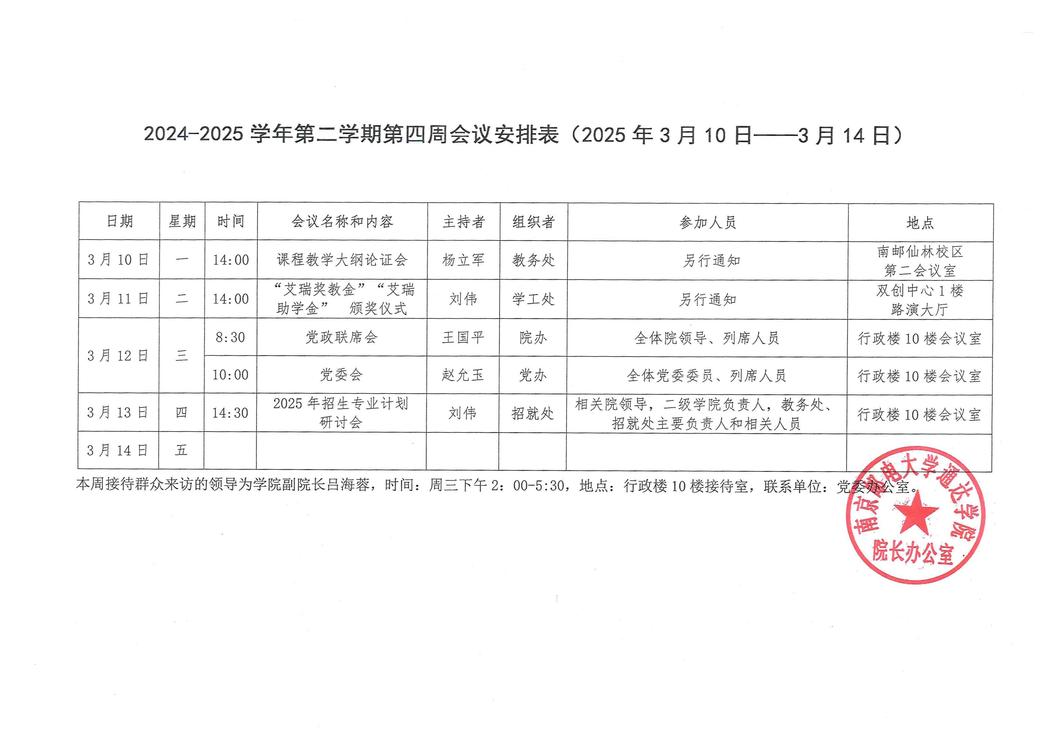 2024-2025学年第二学期第四周会议安排表