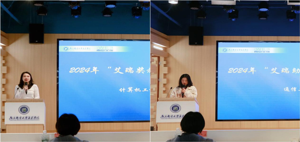 “艾瑞奖教金”获得者、计算机工程学院辅导员靳薇弘分享了自己的工作感悟。她表示,这份奖项不仅是荣誉,更是激励自己继续坚守育人初心、提升工作能力的动力,她将持之以恒为学院发展和学生成长贡献自己的力量。“艾瑞助学金”获得者、通信工程学院学生代表陈丽安诚挚感谢南京艾瑞集团和学校的关爱,表示会将这份温暖转化为奋进的力量,努力提升专业素养,以优异成绩回馈社会、母校和艾瑞集团。