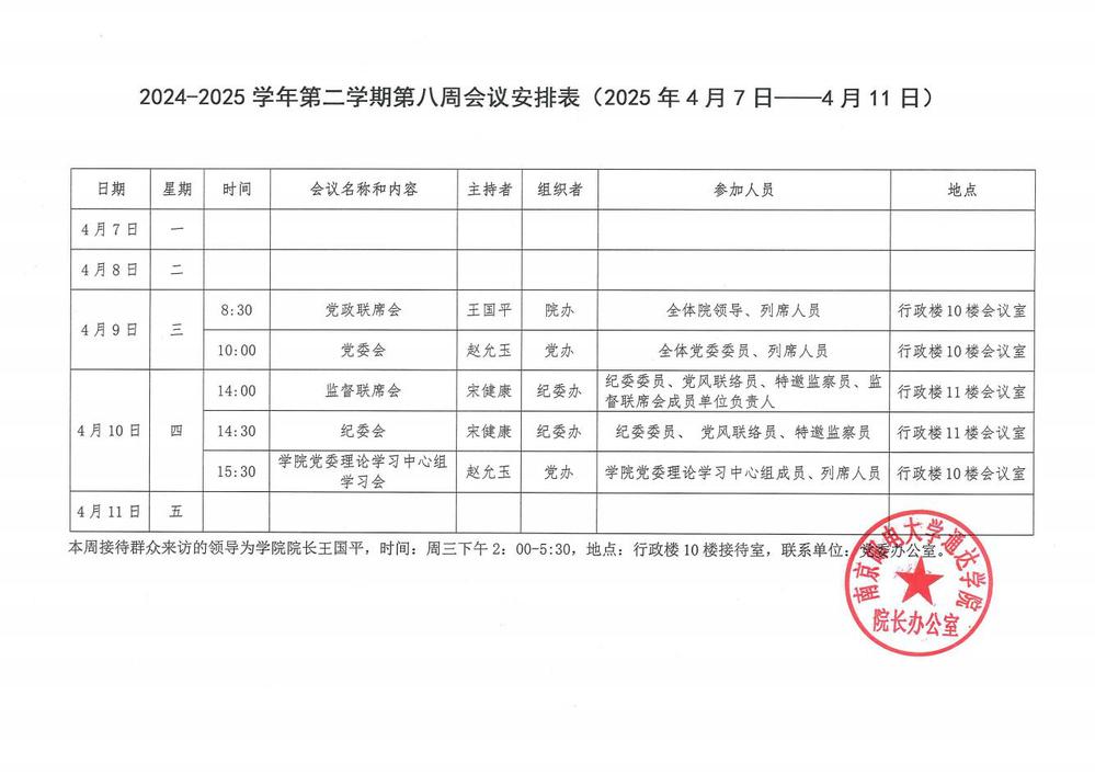 2024-2025学年第二学期第八周会议安排表