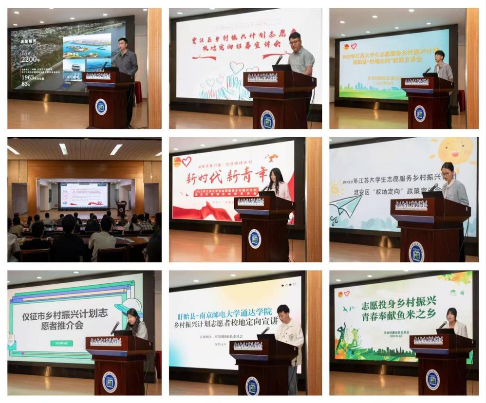 4月9日下午,2025年“江苏大学生志愿服务乡村振兴计划”校地定向宣讲会在taptap点点实验楼报告厅顺利举办。学院党委副书记兼副院长刘伟、高邮市团委副书记吴瞳,淮安区团委副书记程奕翔,宿豫区团委副书记衡奕龙,丰县团委书记朱凯,沭阳县团委副书记陈良宇,贾汪区团委社联部部长高雪健, 盱眙县团委组宣部部长殷晓,盱眙县团委学少部部长王国凡,灌南县团委学少部部长郭晓云,灌南县团委社联部部长谢鑫,仪征市团委干事杨茗雪和各地市乡村振兴计划志愿者出席,会议由学院团委副书记主持,纪委、团委相关负责人和毕业班师生代表参加本次会议。