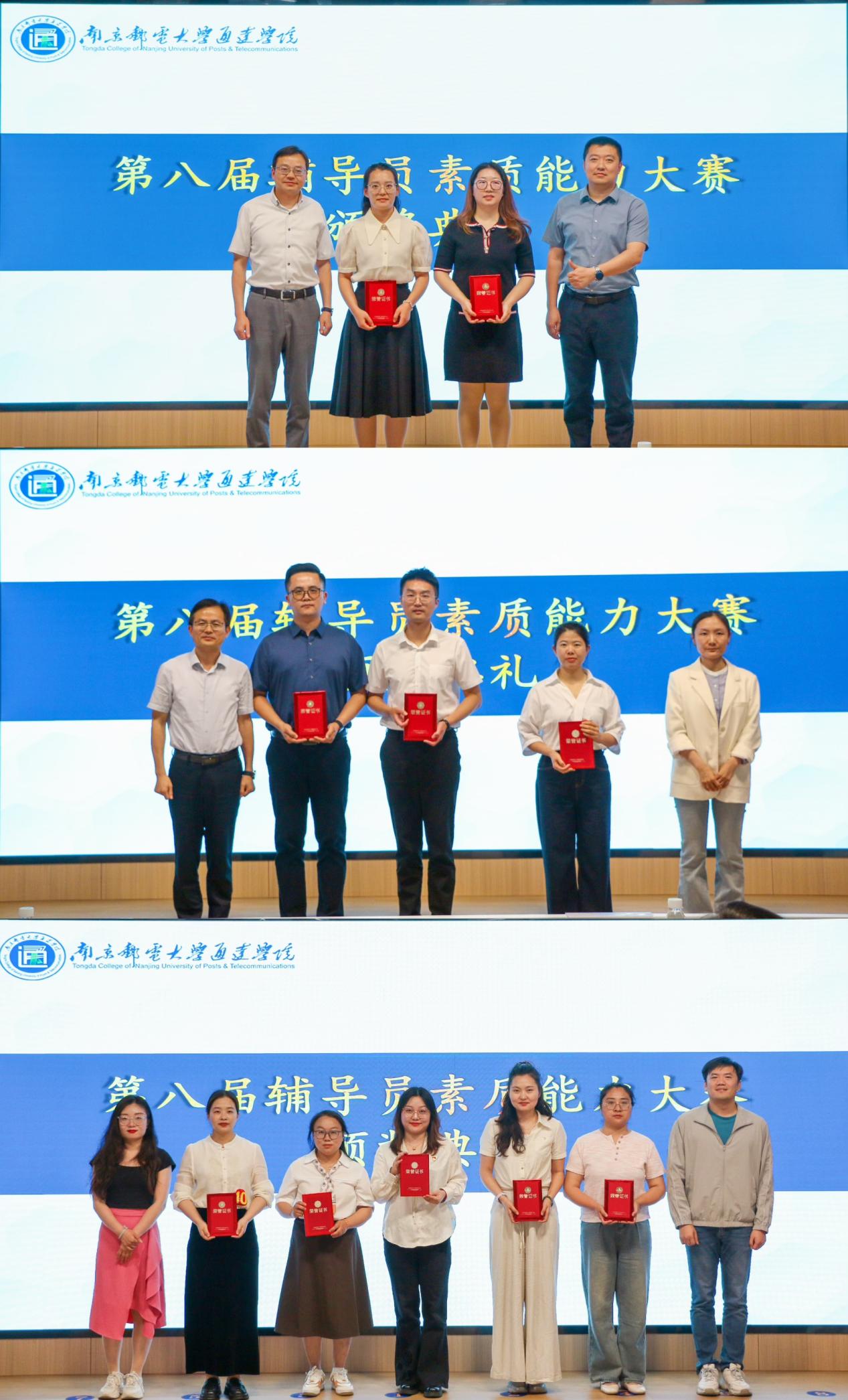 综合两阶段四环节的综合得分,通信工程学院辅导员张梦雪、商学院辅导员吉青获得一等奖;电气工程学院辅导员刘阳、商学院辅导员周盈丹、电子工程学院辅导员杜阳获得二等奖;商学院辅导员张晓、陈静、电气工程学院辅导员琚琪琪、计算机工程学院辅导员冯雪冰、宰华峰获得三等奖。