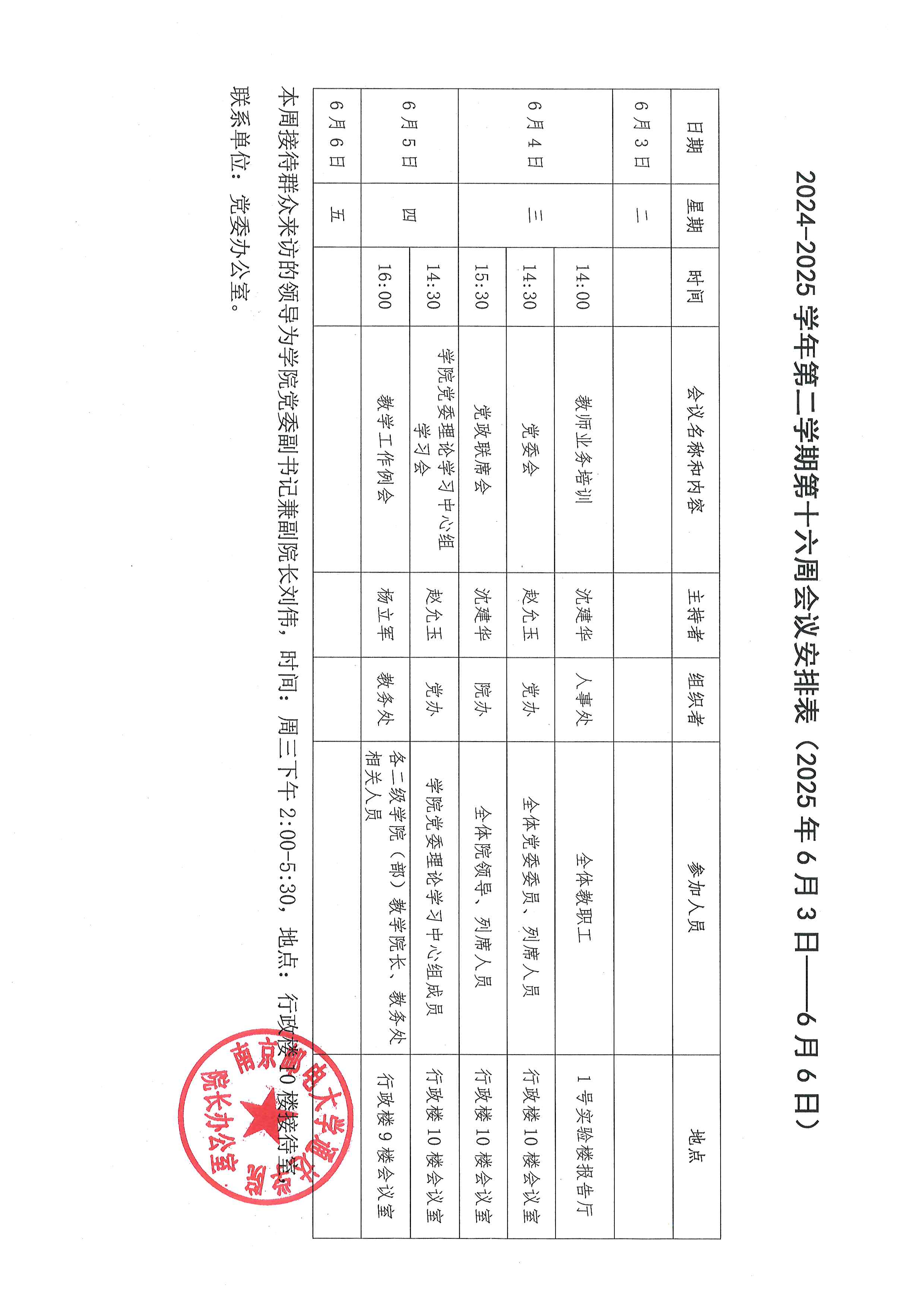 2024-2025学年第二学期第十六周会议安排表