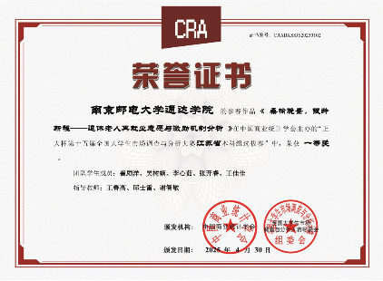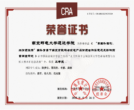 2 | “享国补福利,燃消费激情” 国补背景下南京市数码与家电产品消费者购买意愿及影响因素调查研究 | 陈梦仪、邵雨欣、李娜、龚晓 | 唐军、徐久阳、范兆媛 | 国三 |