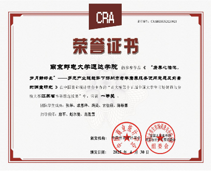 4 | “康养心怡悦,岁月静好长”——多元产业链趋势下扬州市老年康养服务使用意愿及前景的调查研究 | 张华、成恩泽、冯昊、古佳浪、陈铮霖 | 唐军、赵尔曼、范胜雪 | 省一 |