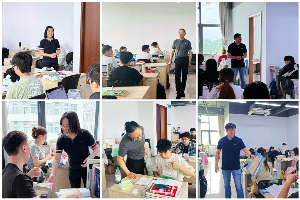 7月16日上午,暑气渐盛,校园内蝉鸣阵阵,却丝毫未扰乱考研自习室内的专注氛围。学院党委书记赵允玉、院长沈建华、党委副书记兼副院长刘伟、学生工作处负责人、二级学院党总支负责人以及2022级全体辅导员组成慰问团队,为2025年暑假留校备考的学子们送去盛夏里的专属关怀。