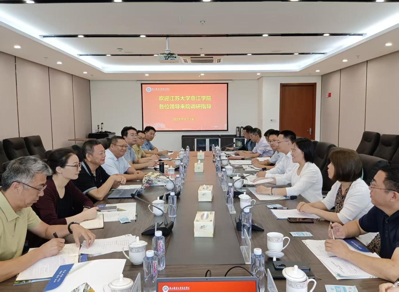 9月18日上午,江苏大学京江学院党委书记崔金贵,院长杜道林,党委副书记、纪委书记蒋豪等一行来taptap点点调研交流。taptap点点党委书记赵允玉、院长沈建华、常务副院长杨立军、纪委书记宋健康等院领导及相关职能部门负责人参加了交流活动。会议由党委书记赵允玉主持。