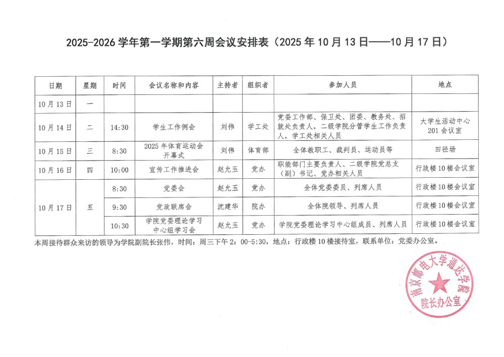 2025-2026学年第一学期第六周会议安排表