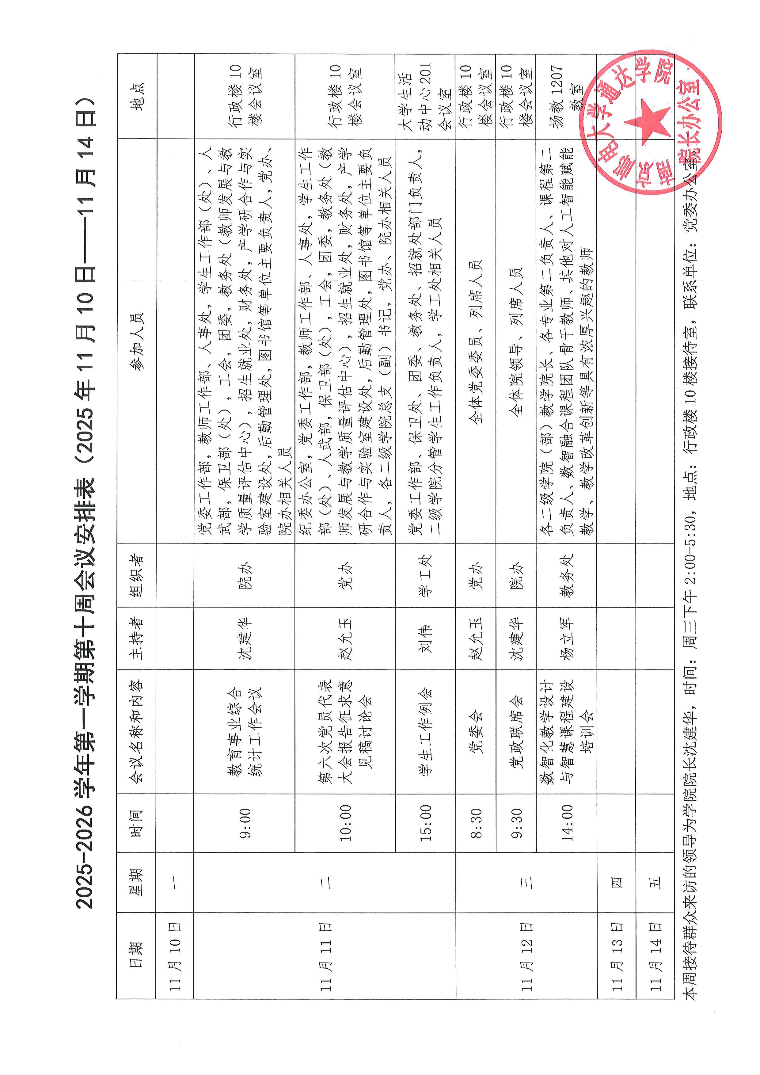 2025-2026学年第一学期第十周会议安排表