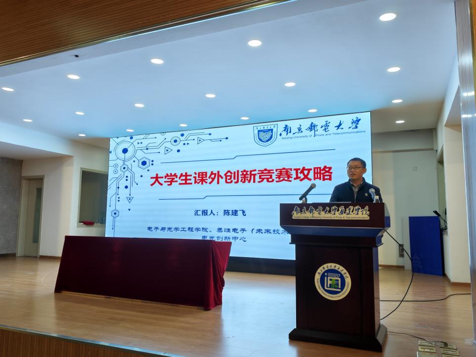 2025年11月7日,通达大讲堂在1号实验楼报告厅举行。本次讲座特邀南京邮电大学陈建飞教授担任主讲嘉宾,围绕“大学生课外创新竞赛攻略”展开深入探讨,同时邀请2025年全国大学生电子设计竞赛国家二等奖获得者脱碧莲同学分享参赛经验,全院200余位师生参加活动。