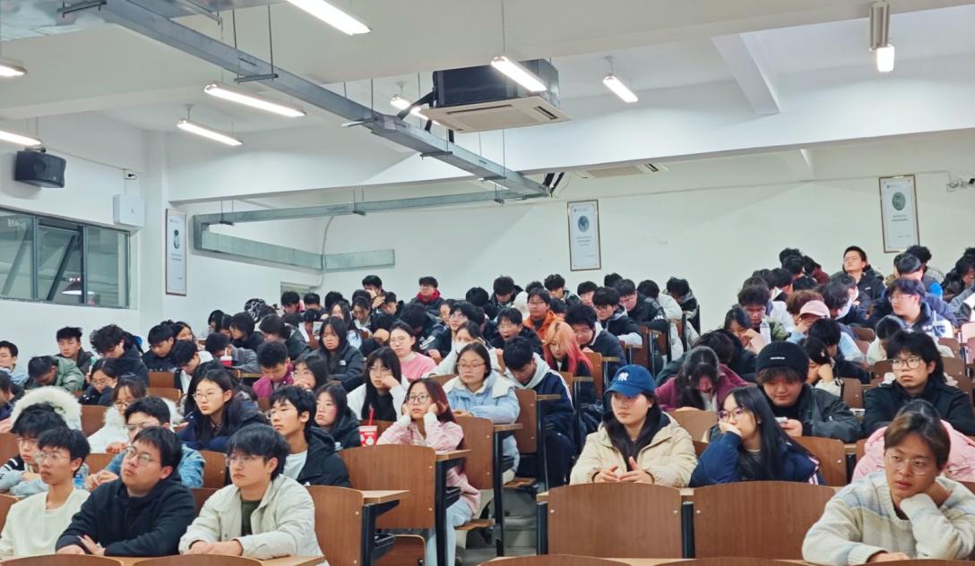 讲座中,林教授从全会召开的时代背景切入,指出其是我国在关键时期召开的重要会议,核心聚焦 “十五五” 规划制定,审议通过的相关建议为未来五年发展做好顶层设计;接着围绕全会精神学习,阐释 “为何学” 与 “怎么学”,强调学习是凝聚共识、激发活力的核心举措,提出 “全面系统学、融会贯通学、联系实际学” 的要求,叮嘱同学们重点理解多方面内容。讲座现场学习氛围浓厚热烈,同学们以饱满的热情投入全程,展现出青年学子勤学善思、心系家国的精神风貌,现场不时响起阵阵掌声,传递着同学们对国家发展蓝图的由衷赞许与坚定信心。