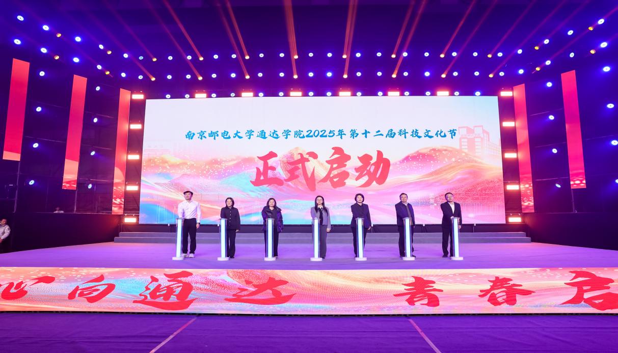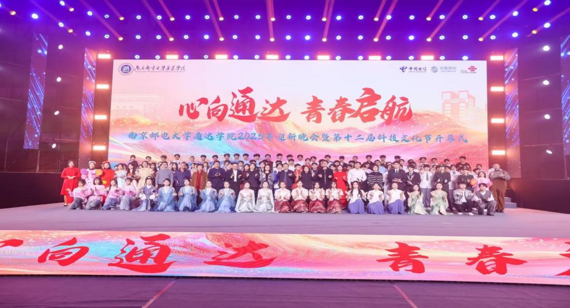 12月17日晚,学院在体育馆成功举办2025年“心向通达 青春启航”迎新晚会暨第十二届科技文化节开幕式。扬州科教集团总经理闫冬梅、扬州移动公司总经理宗迅怀、扬州电信分公司副总经理杜亨亮、扬州联通高校网格经理秦如月、学院党委书记赵允玉、院长沈建华、副院长张伟、纪委书记宋健康、党委副书记兼副院长刘伟,学院老领导朱清教授、赵洪牛教授、二级学院和相关职能部门负责人、辅导员老师以及2025级新生代表共3000余人到场参加。