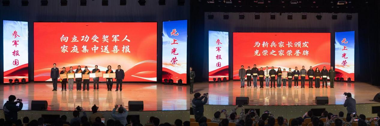 仪式期间,举行了为立功受奖军人家庭集中送喜报、为新兵家长代表颁发光荣之家荣誉牌等庄重环节,以此致敬军人家庭的默默奉献与坚守,切实增强军人及家属的荣誉感与自豪感,进一步激发广大青年学子参军报国的热情。